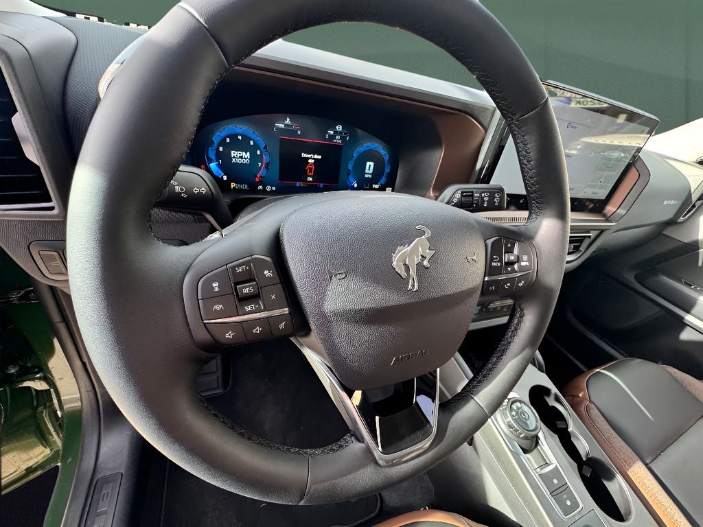 The vehicle has four wheel drive capabilities. This vehicle has auto-adjust speed for safe following. This model offers Android Auto for seamless smartphone integration. The Ford Bronco Sport offers Apple CarPlay for seamless connectivity. Protect this Ford Bronco Sport from unwanted accidents with a cutting edge backup camera system. Maintaining a stable interior temperature in this vehicle is easy with the climate control system. Easily set your speed in this model with a state of the art cruise control system. Increase or decrease velocity with the touch of a button. The Ford Bronco Sport has a 3 Cyl, 1.5L high output engine. Electronic Stability Control is one of many advanced safety features on this Ford Bronco Sport. Enjoy the tried and true gasoline engine in this mid-size suv. This 2025 Ford Bronco Sport contains elegant lines finished with an exquisite green color. Bluetooth® technology is built into this Ford Bronco Sport, keeping your hands on the steering wheel and your focus on the road. The Ford Bronco Sport is pure luxury with a heated steering wheel. The leather seats in this vehicle are a must for buyers looking for comfort, durability, and style. This mid-sized SUV is perfect for your next adventure. Help alleviate lower back pain with the driver seat lumbar support in this model. The installed navigation system will keep you on the right path. The state of the art park assist system will guide you easily into any spot. Start this mid-size suv from inside with remote start.