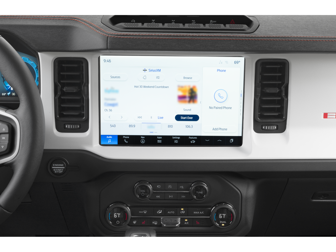- SYNC 4 -inc: 12" LCD capacitive touchscreen w/swipe capability, wireless phone connection, cloud connected, 911 Assist, wireless Apple CarPlay and Android Auto compatibility, digital owner's manual and conversational voice command recognition