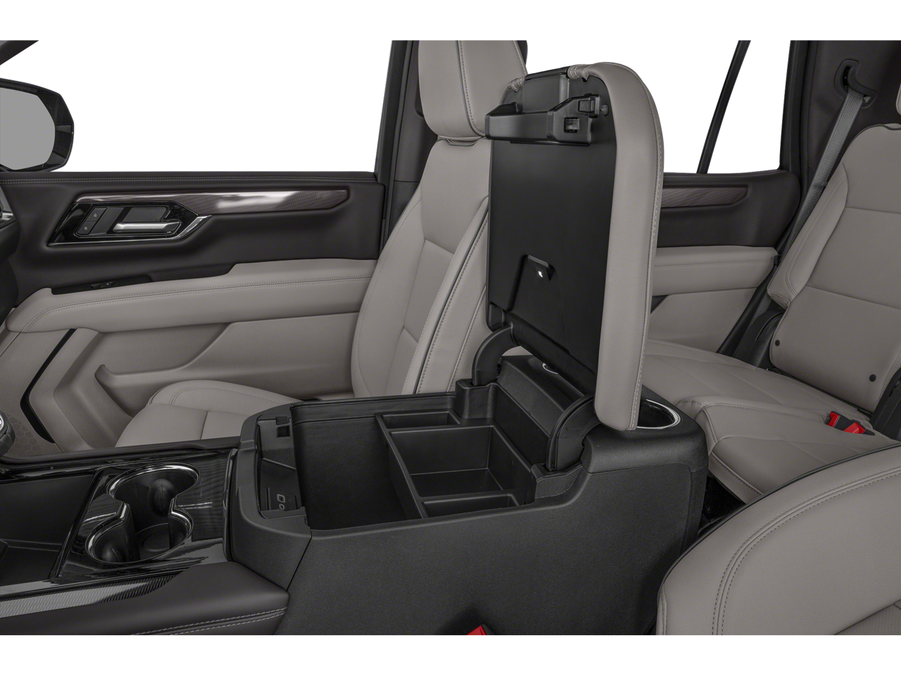 - Console, floor with storage area, cup holders