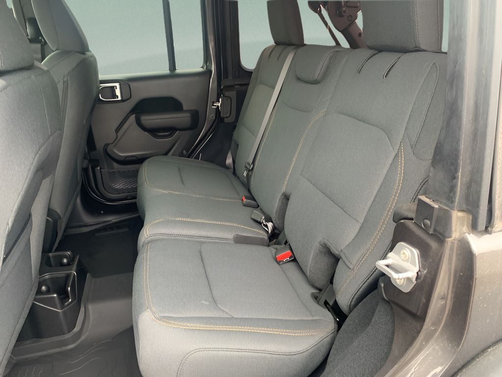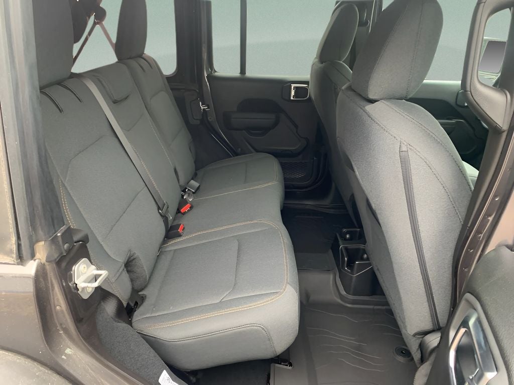 See what's behind you with the back up camera on this unit. Bluetooth® technology is built into this vehicle, keeping your hands on the steering wheel and your focus on the road. An off-road package is equipped on this unit. This Jeep Wrangler offers Apple CarPlay for seamless connectivity. This model has auto-adjust speed for safe following. This Jeep Wrangler offers Android Auto for seamless smartphone integration. The vehicle's Forward Collision Warning system alerts the driver to potential front-end collisions, enhancing safety. This Jeep Wrangler has four wheel drive capabilities. This Jeep Wrangler emanates grace with its stylish gray exterior. This unit has a 4 Cyl, 2.0L high output engine. The fog lights cut through the weather so you can see what's ahead. Enjoy the tried and true gasoline engine in this Jeep Wrangler. The vehicle features heated side mirrors keeping the ice off and your vision spot-on. The Electronic Stability Control will keep you on your intended path.