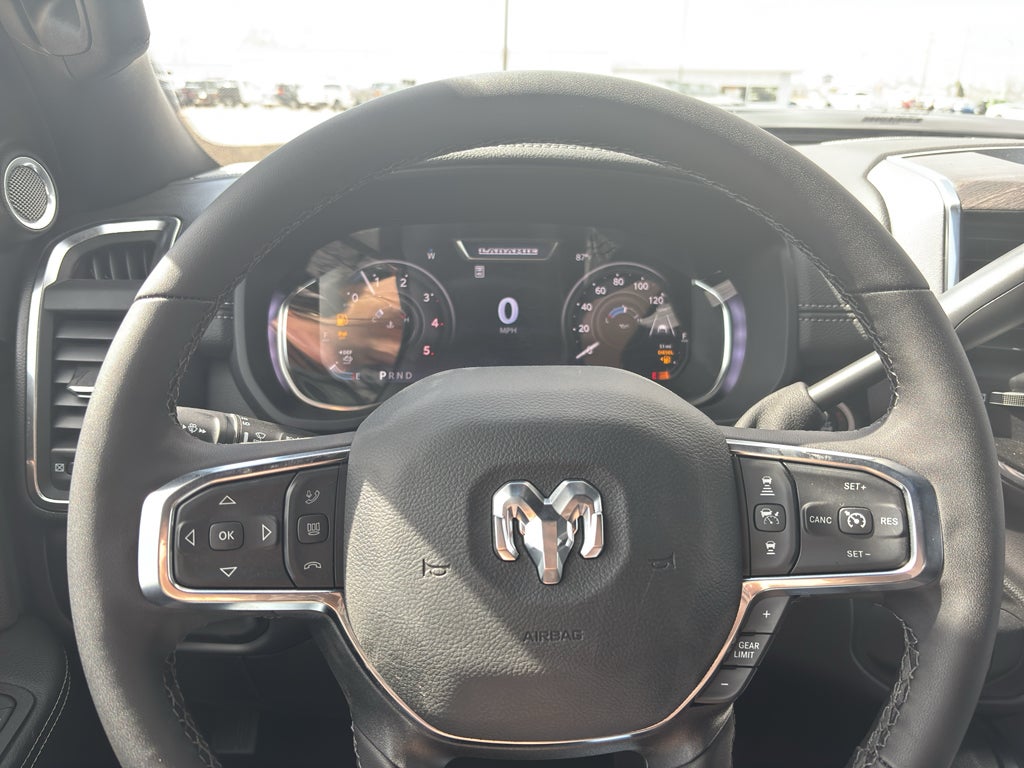 Cold Weather Group: Engine Block Heater; MOPAR Winter Front Grille Cover. Quick Order Package 24H Laramie. Tow Technology Plus Group: Trailer Reverse Steering Control; Digital 3.0 Rear View Auto Dimming Mirror. Sport Appearance Package: Body Color Grille-Surround; Sport Performance Hood; Sport Decal; 20" X 8.0" Polished Aluminum Wheels. Towing Technology Group: Center Stop Lamp with Cargo View Camera; MOPAR Trailer Camera Wiring with No Camera; Surround View Camera System; Trailer Tire Pressure Monitoring System; Trailer Reverse Guidance; MOPAR Trailer Camera Wiring with No Camera; Surround View Camera System; Trailer Tire Pressure Monitoring System; Trailer Reverse Guidance. Laramie Level 2 Plus Equipment Group: Google Android Auto; SiriusXM Radio Service; Power Adjustable Pedals with Memory; For Details. Visit DriveUconnect.com; For More Info. Call 800-643-2112; Integrated Voice Command with Bluetooth®; Emergency Vehicle Alert System (EVAS); Power Deployable Running Boards; Auto Power-Folding Mirrors; Anti-Spin Differential Rear Axle; Drowsy Driver Detection; Mirror Running Lights; MOPAR Deployable Bed Step; Alexa Built-In; Apple CarPlay; Power-Adjustable Convex Aux Mirrors; Active Lane Management System; Forward and Reverse Utility Lights; Disassociated Touchscreen Display; Remote Tailgate Release; 17 Speaker Harman/kardon Premium Sound; 2nd Row in Floor Storage Bins; Center Stop Lamp with Cargo View Camera; Rain Sensitive Windshield Wipers; LED Bed Lighting; Connectivity - US/Canada; Traffic Sign Recognition; GPS Navigation; 4G LTE Wi-Fi Hot Spot; Adaptive Steering System; GPS Antenna Input; Exterior Mirrors with Heating Element; Auto Dim Exterior Mirror; SiriusXM with 360L; Global Telematics Box Module; Connected Travel and Traffic Services; Foam Bottle Insert (door Trim Panel); Off-Road Info Pages; Selectable Tire Fill Alert; Trailer Tow Pages; Leather Trimmed Bucket Seats; HD Radio; 14.4" Touchscreen Display; Power Heated Fold Telescopic Mirrors with Memory; Exterior Mirrors with Supplemental Signals; Exterior Mirrors Courtesy Lamps; Uconnect 5 Nav with 14.4" Display; MOPAR Spray in Bedliner; Auto High Beam Headlamp Control; Chrome Exterior Mirrors; Exterior Mirrors with Memory; Power Adjust Mirrors; Power Telescoping Mirrors; Auto Dim Exterior Passenger Mirror; Auto Adjust in Reverse Exterior Mirrors. 20" X 8.0" Polished Aluminum Wheels. Power Sunroof. Power Deployable Running Boards. 5th Wheel/gooseneck Towing Prep Group. Leather Trimmed Bucket Seats. MOPAR Trailer Camera Wiring with No Camera. Center Stop Lamp with Cargo View Camera. Granite Crystal Met CC. MOPAR Front and Rear Rubber Floor Mats. Clearance Lamps. Transfer Case Skid Plate Shield. **Equipment listed is based on original vehicle build and subject to change. Please confirm the accuracy of the included equipment by calling the dealer prior to purchase.**