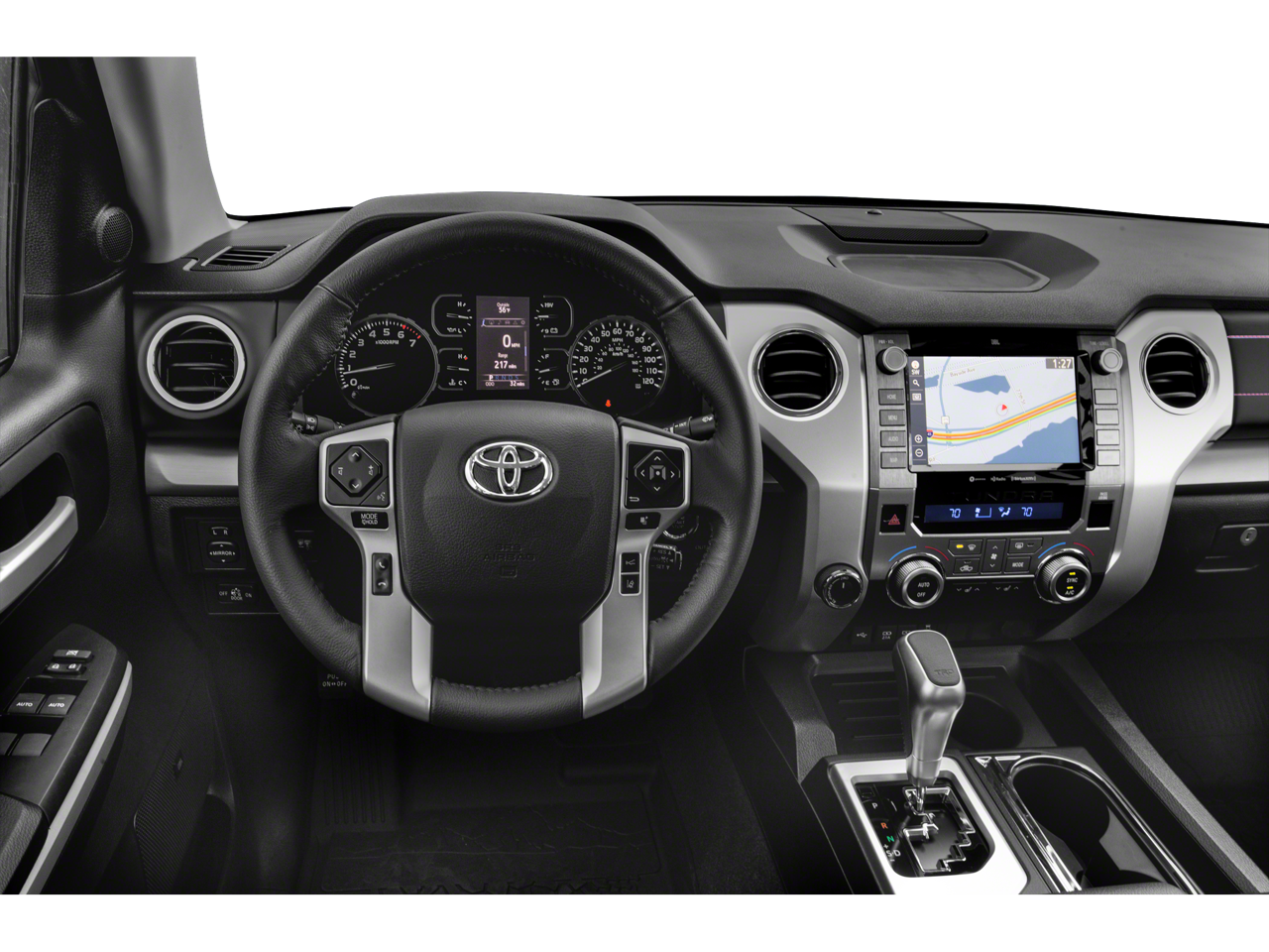 The leather seats are soft and supportive on this Toyota Tundra. See what's behind you with the back up camera on this unit. Never get into a cold vehicle again with the remote start feature on this model. Apple CarPlay: Seamless smartphone integration for the Toyota Tundra - stay connected and entertained on the go! Bluetooth® technology is built into this unit, keeping your hands on the steering wheel and your focus on the road. This Toyota Tundra offers Android Auto for seamless smartphone integration. You'll never again be lost in a crowded city or a country region with the navigation system on this 1/2 ton pickup. This vehicle features a HomeLink System. This model has four wheel drive capabilities. Greater towing safety becomes standard with the installed trailer brake. The vehicle projects refinement with a racy metallic gray exterior. The Toyota Tundra has a V8, 5.7L high output engine.