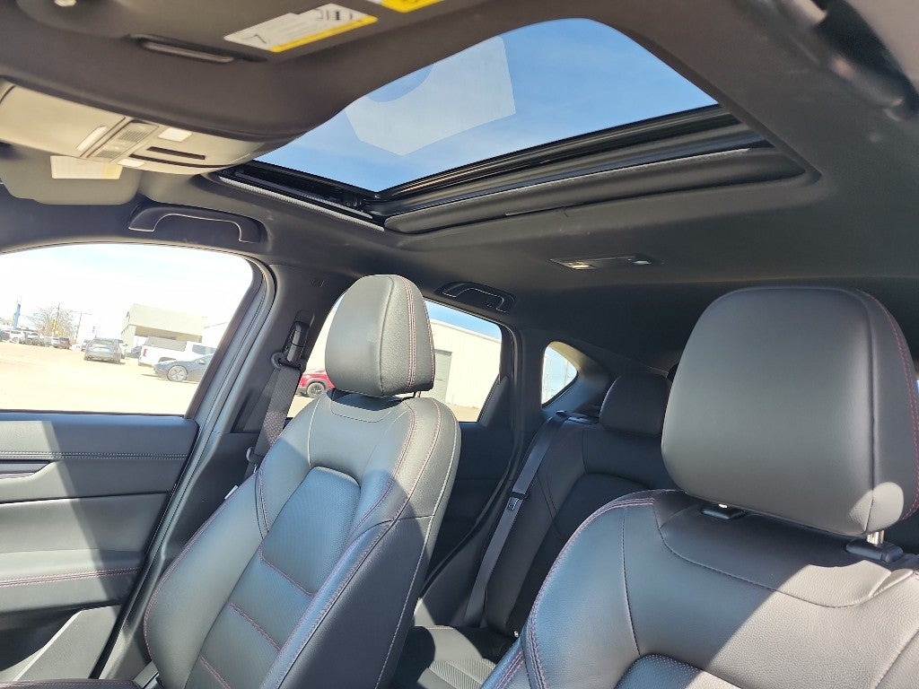 This small suv's blind spot monitor enhances safety. The leather seats in this vehicle are a must for buyers looking for comfort, durability, and style. The vehicle offers Automatic Climate Control for personalized comfort. Start it from inside with remote start. Protect the Mazda CX-5 from unwanted accidents with a cutting edge backup camera system. This unit features a hands-free Bluetooth® phone system. The vehicle stays safely in its lane with Lane Keep Assist. This small suv offers Android Auto for seamless smartphone integration. Engulf yourself with the crystal clear sound of a BOSE sound system in this model. This small suv offers Apple CarPlay for seamless connectivity. Keep your hands warm all winter with a heated steering wheel in the Mazda CX-5 . With the keyless entry system on this 2023 Mazda CX-5 you can pop the trunk without dropping your bags from the store. Set the temperature exactly where you are most comfortable in this model. The fan speed and temperature will automatically adjust to maintain your preferred zone climate.