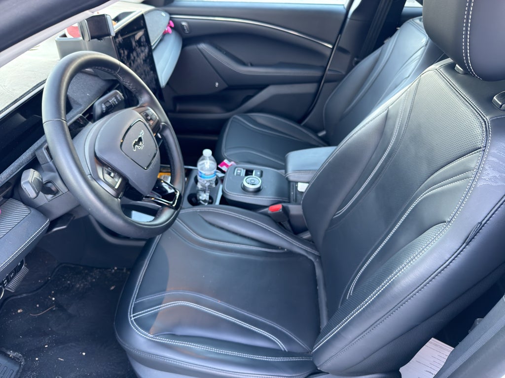 This Ford Mustang Mach-E is pure luxury with a heated steering wheel. The vehicle offers Android Auto for seamless smartphone integration. The vehicle has auto-adjust speed for safe following. This model has a clean CARFAX vehicle history report. See what's behind you with the back up camera on the vehicle. The vehicle offers Apple CarPlay for seamless connectivity. The leather seats in this mid-size suv are a must for buyers looking for comfort, durability, and style. The installed navigation system will keep you on the right path. This vehicle is a certified CARFAX 1-owner. Load groceries and much more with ease into this model thanks to the power liftgate. Conquer any rainy, snowy, or icy road conditions this winter with the all wheel drive system on the vehicle. Set the temperature exactly where you are most comfortable in it. The fan speed and temperature will automatically adjust to maintain your preferred zone climate.